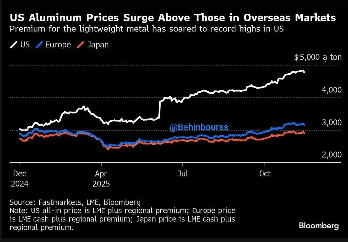 به گزارش نبض بورس، ترامپ ابتدا تعرفهٔ آلومینیوم را به ۲۵٪ رساند و سپس آن را دو برابر کرد. این اقدام باعث شد واردکنندگان آمریکایی برای فرار از مالیات سنگین به منابع داخلی روی بیاورند، اما آمریکا واردکنندهٔ خالص آلومینیوم است و اکنون با کمبود جدی مواجه شده است.