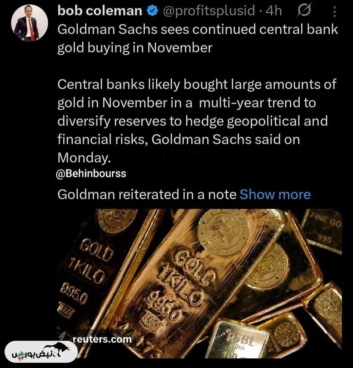 گلدمن ساکس: ادامه خرید طلا توسط بانک‌های مرکزی در ماه نوامبر