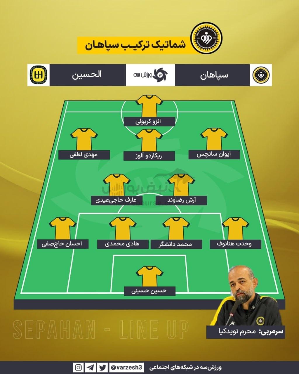 ترکیب قطعی سپاهان مقابل الحسین اردن