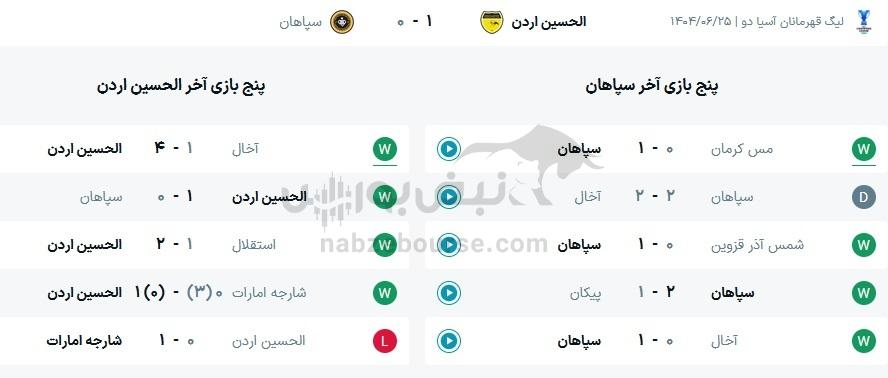 تیم سپاهان در هفته پنجم لیگ قهرمانان آسیا (2) روز سه شنبه 4 آذر ماه میزبان الحسین اردن است. بازی سپاهان و الحسین اردن در چهارچوب مسابقات هفته پنجم لیگ قهرمانان آسیا (2) ساعت 19:30 روز سه شنبه 4 آذر ۱۴۰۴ در ورزشگاه نقش جهان اصفهان برگزار میشود.