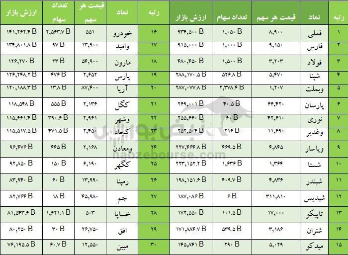 تصویر کلان ۳۰ شرکت برتر بازار