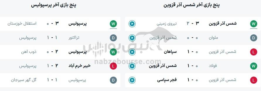 به گزارش نبض بورس، امروز، دو تیم فوتبال ایران، پرسپولیس و شمس آذر قزوین ، در هفته یازدهم لیگ برتر ایران به مصاف هم میروند.