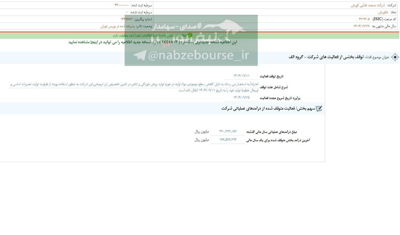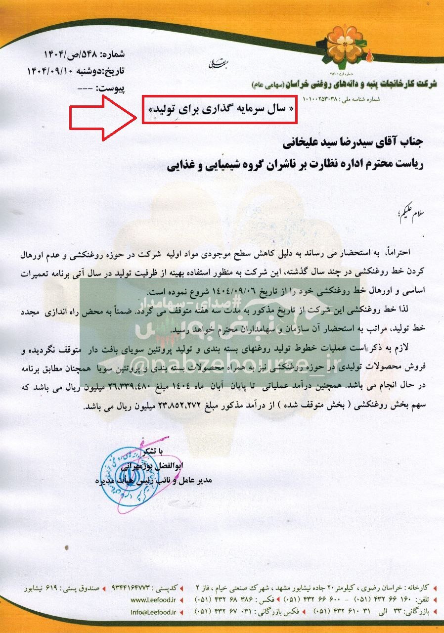 به دلیل کاهش موجودی مواد اولیه روغن خوراکی و تأخیر در تخصیص ارز ترجیحی، تعمیرات اساسی از ۱۱ آذر آغاز شده است.