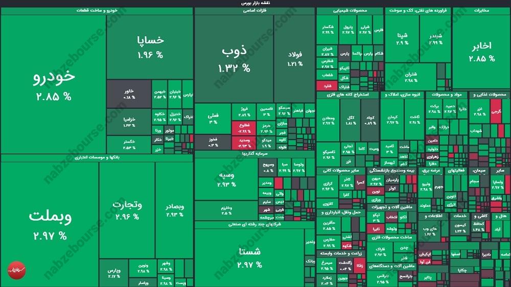 شاخص کل: 3 میلیون و 446 هزار و 788 واحد | افزایش 66931 واحدی | معادل مثبت 1.98 درصد
