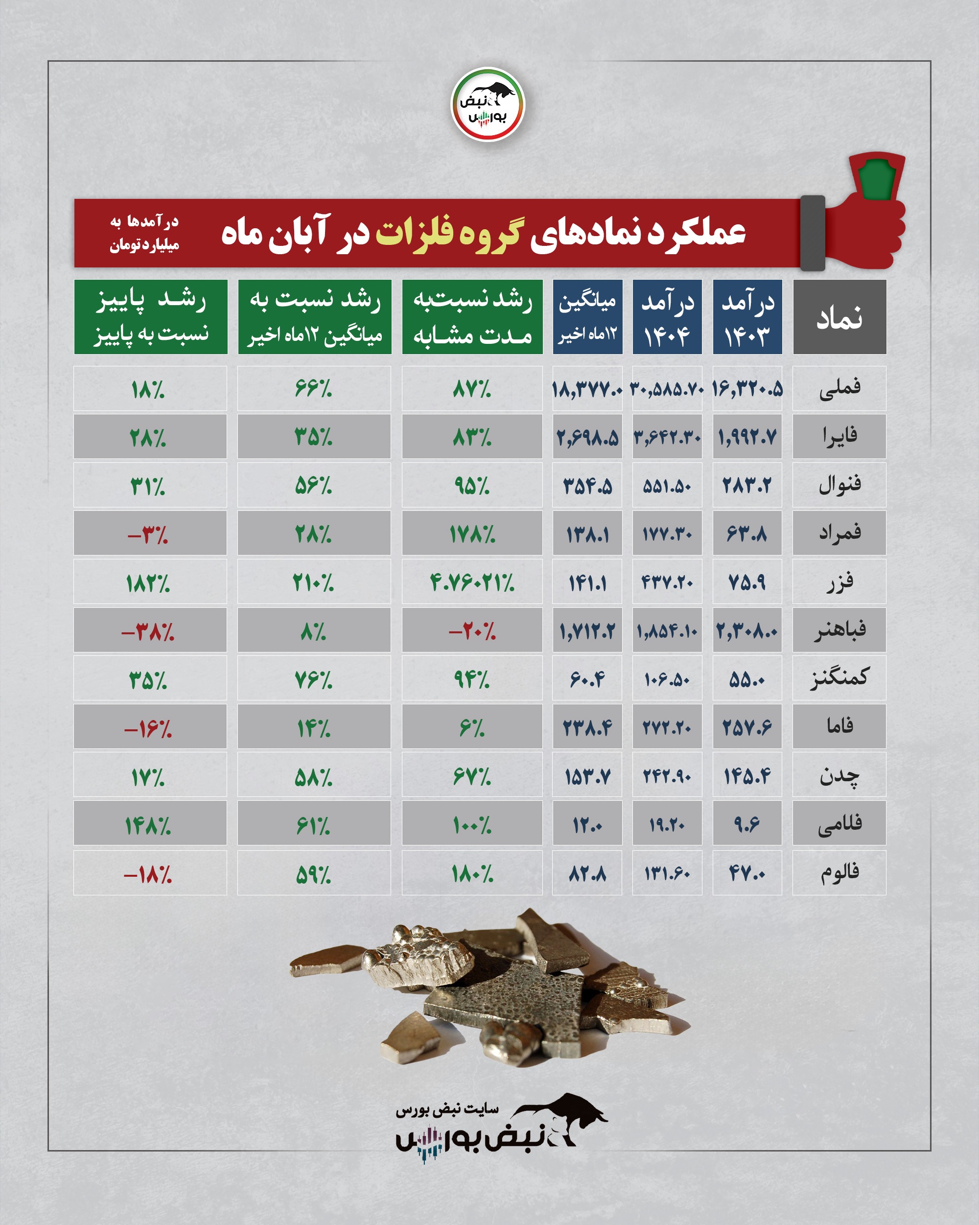 عملکرد گروه فلزات در یکماهه آبان ۱۴۰۴