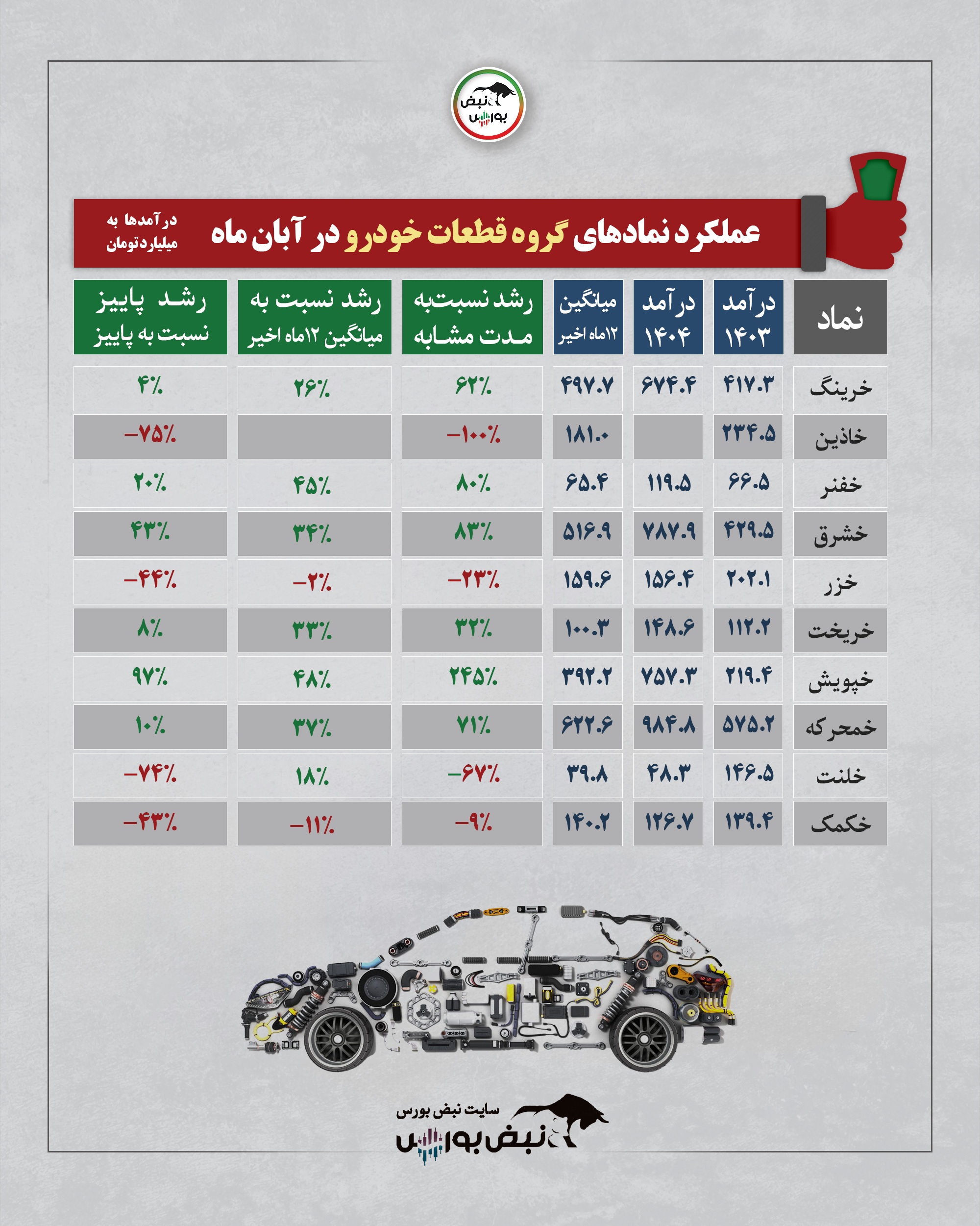 عملکرد گروه قطعات خودرو در یکماهه آبان ۱۴۰۴