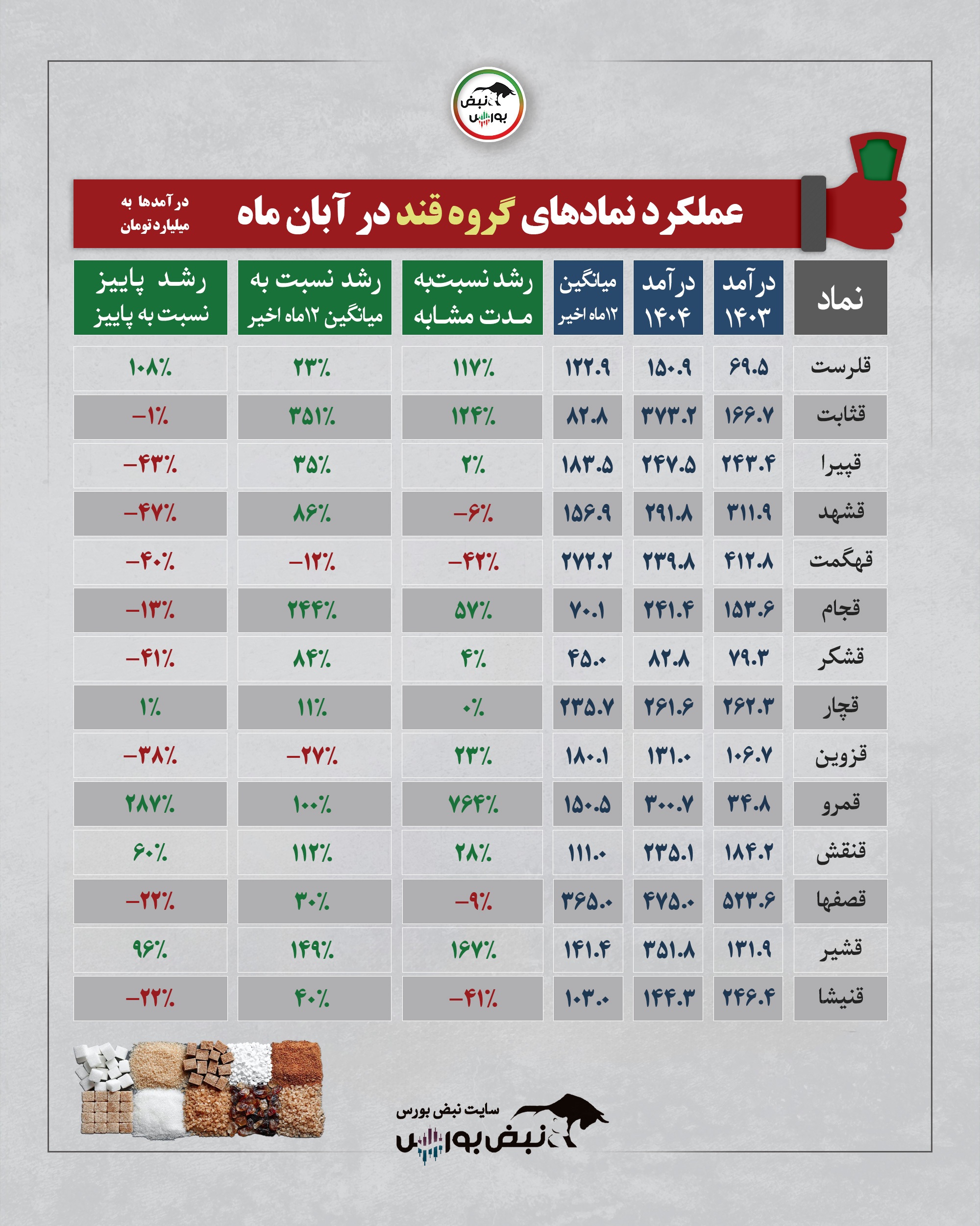 عملکرد گروه قند در یکماهه آبان ۱۴۰۴