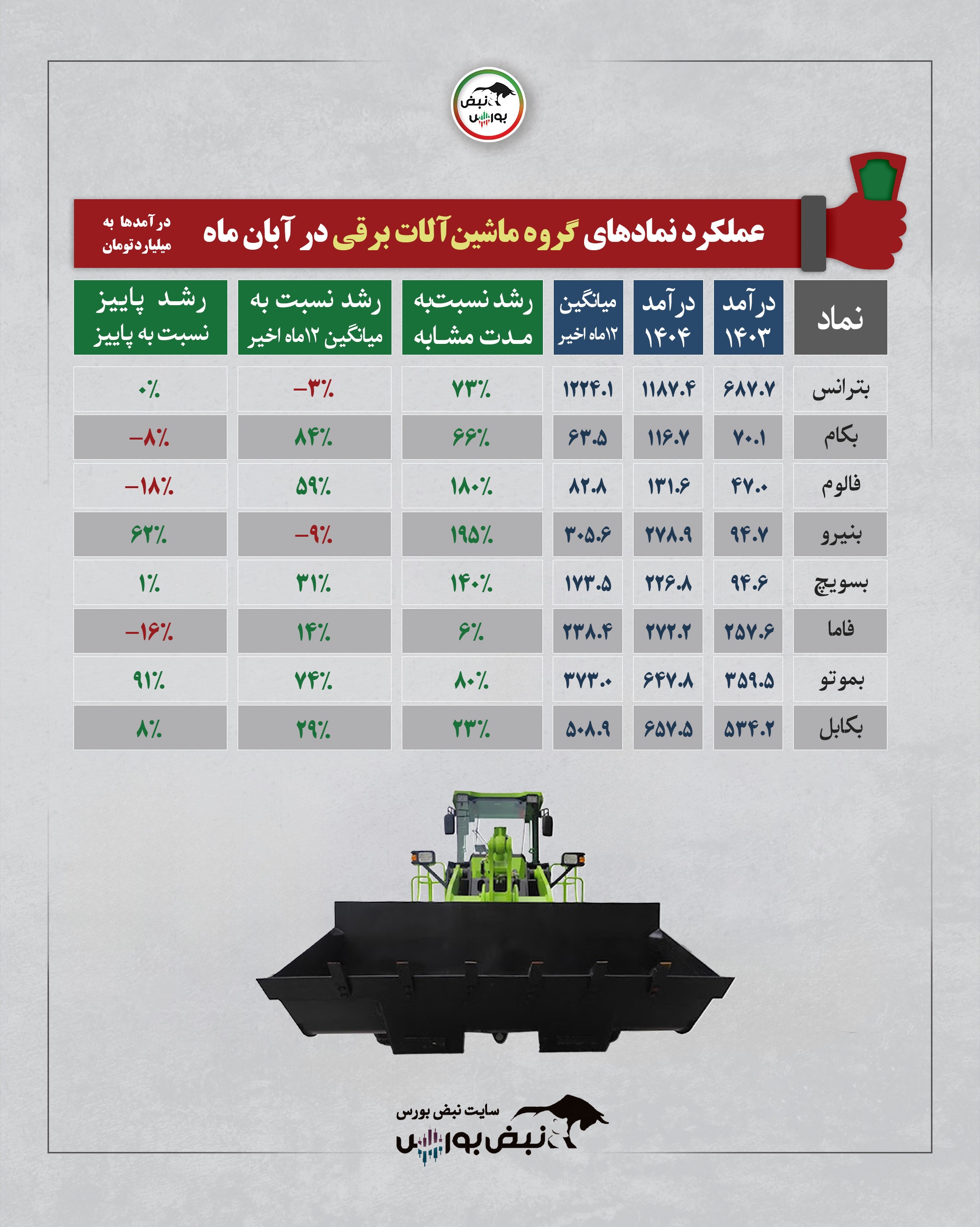 عملکرد گروه ماشینآلات برقی در یکماهه آبان ۱۴۰۴