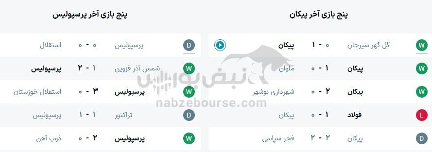 نتایج قبلی پرسپولیس و پیکان