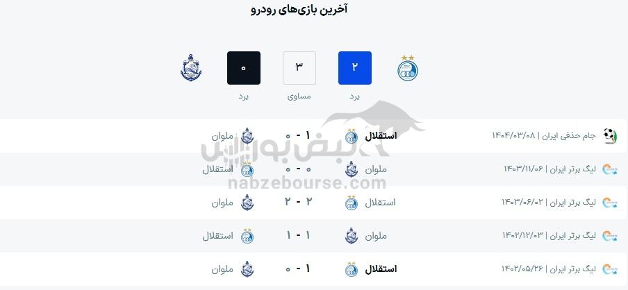 نتایج قبلی استقلال و ملوان