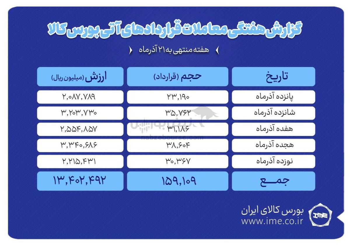 گزارش هفتگی معاملات زعفران نشان میدهد که در هفته منتهی به ۲۱ آذر ماه ۳۳۲ کیلوگرم زعفران نگین به ارزش ۷۴.۹ میلیارد تومان در بازار آتی بورس کالا داد و ستد شد.