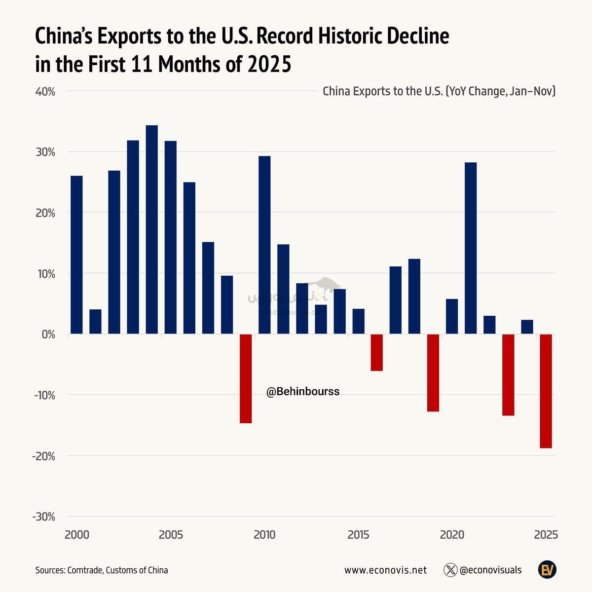 سقوط تاریخی صادرات چین به آمریکا در ۱۱ ماه نخست ۲۰۲۵
