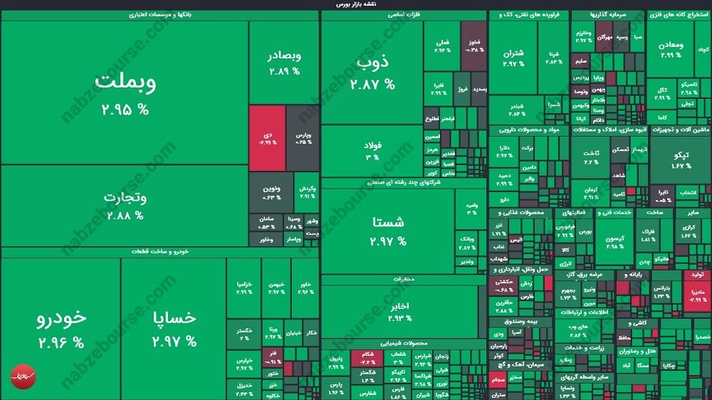 شاخص کل: 3 میلیون و 728 هزار و 598 واحد | افزایش 72521 واحدی | معادل مثبت 1.98 درصد