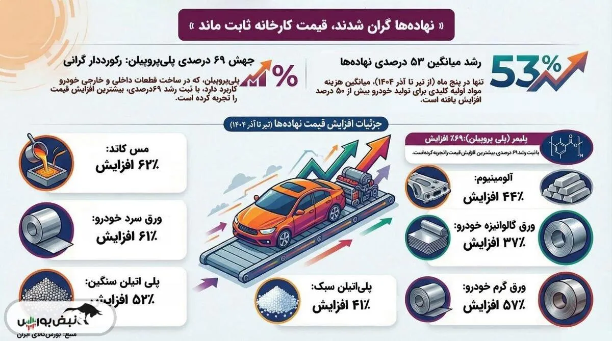 بر اساس گزارش رسمی معاملات بورس کالا، از تیرماه تا آذرماه ۱۴۰۴، مواد اولیه اصلی خودرو جهشهایی را تجربه کردهاند.