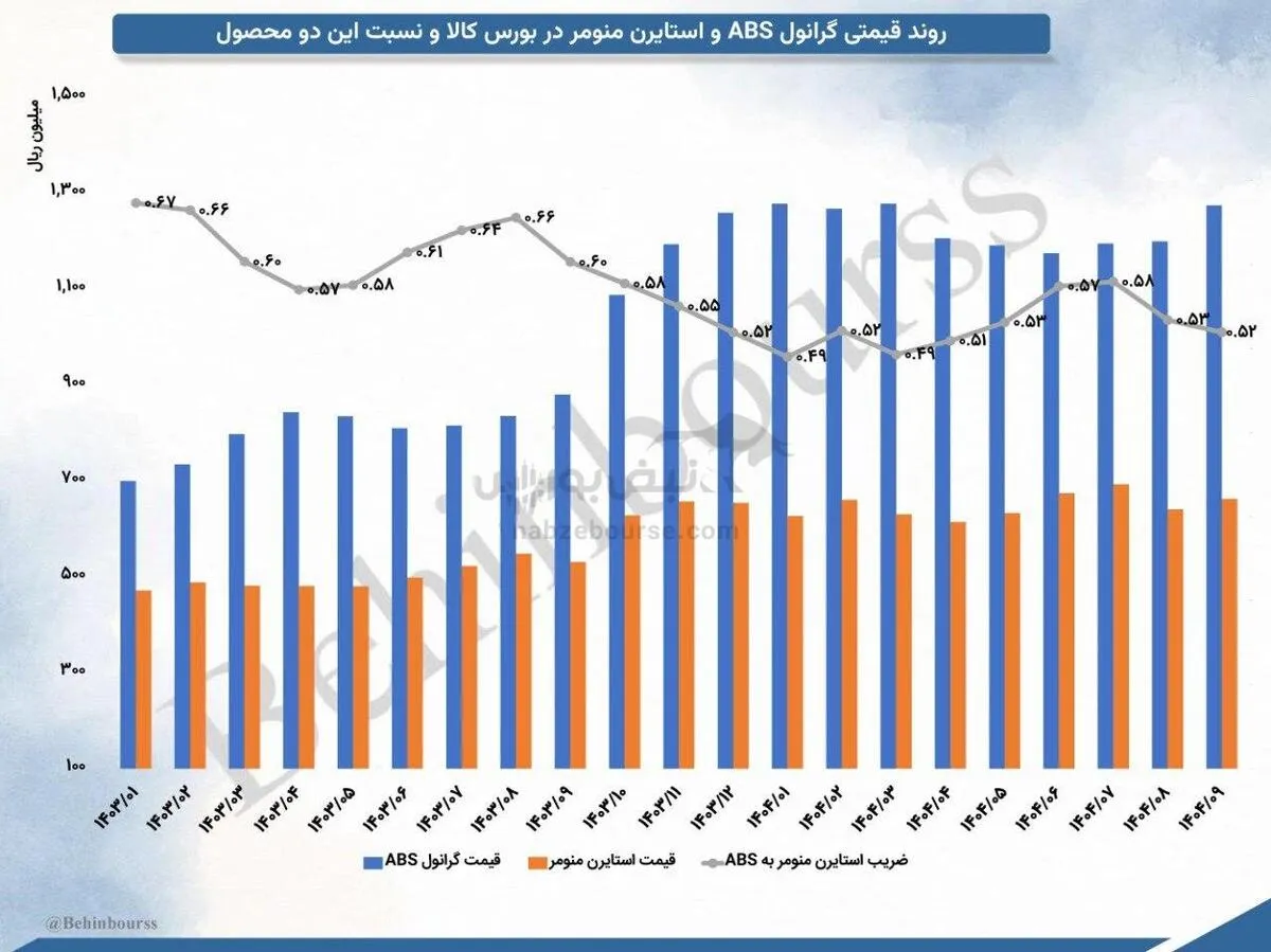 بررسی ضریب استایرن منومر به گرانول ABS در بورس کالا
