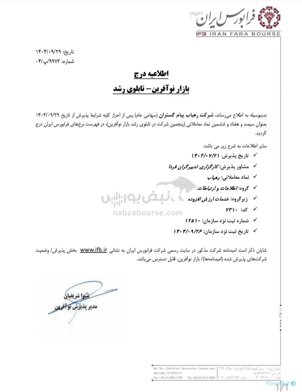 درج «رهیاب» در بازار نوآفرین فرابورس