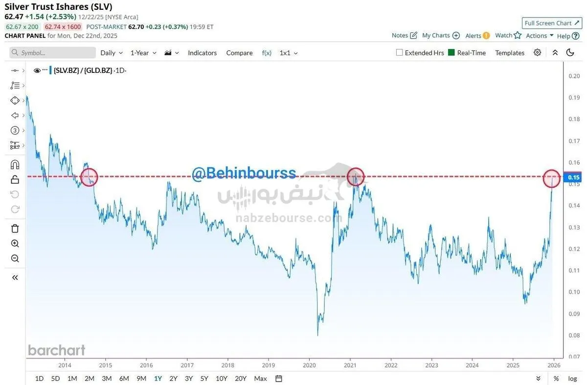 به گزارش نبض بورس، نقره اکنون با بزرگترین فاصله در تقریباً ۵ سال اخیر از طلا پیشی گرفته و به سرعت در حال نزدیک شدن به بهترین عملکرد در بیش از یک دهه گذشته است.