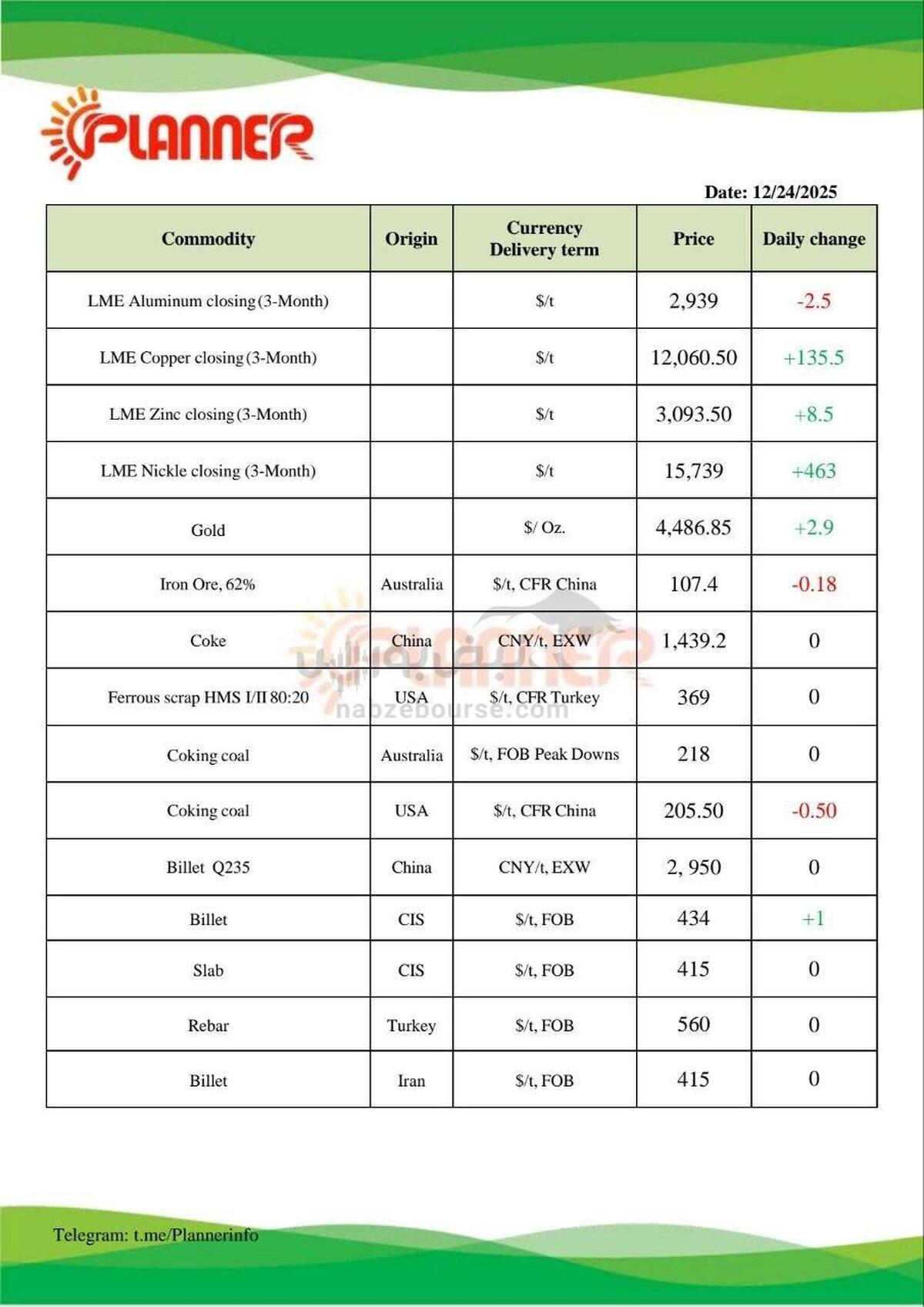 جدول قیمت زنجیره فولاد؛ انرژی و فلزات اساسی