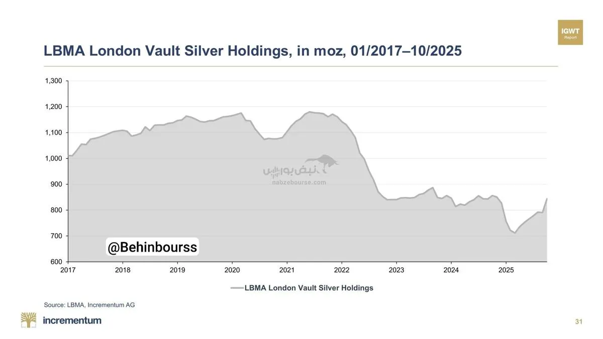 به گزارش نبض بورس، ذخیره نقره لندن در جریان بحران بزرگ نقره فروپاشید، به طوری که موجودی آزاد LBMA به صفر رسید.