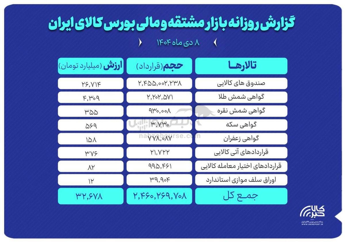 ارزش معاملات بازار مشتقه و مالی بورس کالا ۳۲ همت شد