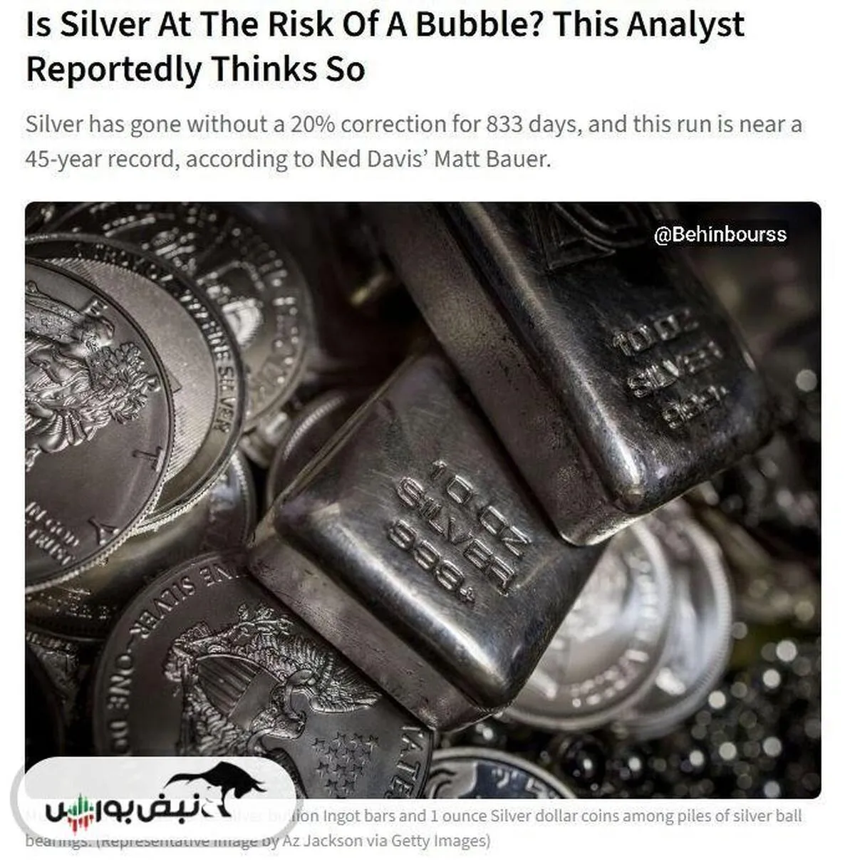 شرکت Ned Davis Research هشدار داده است که نقره وارد مرحله حباب شده است