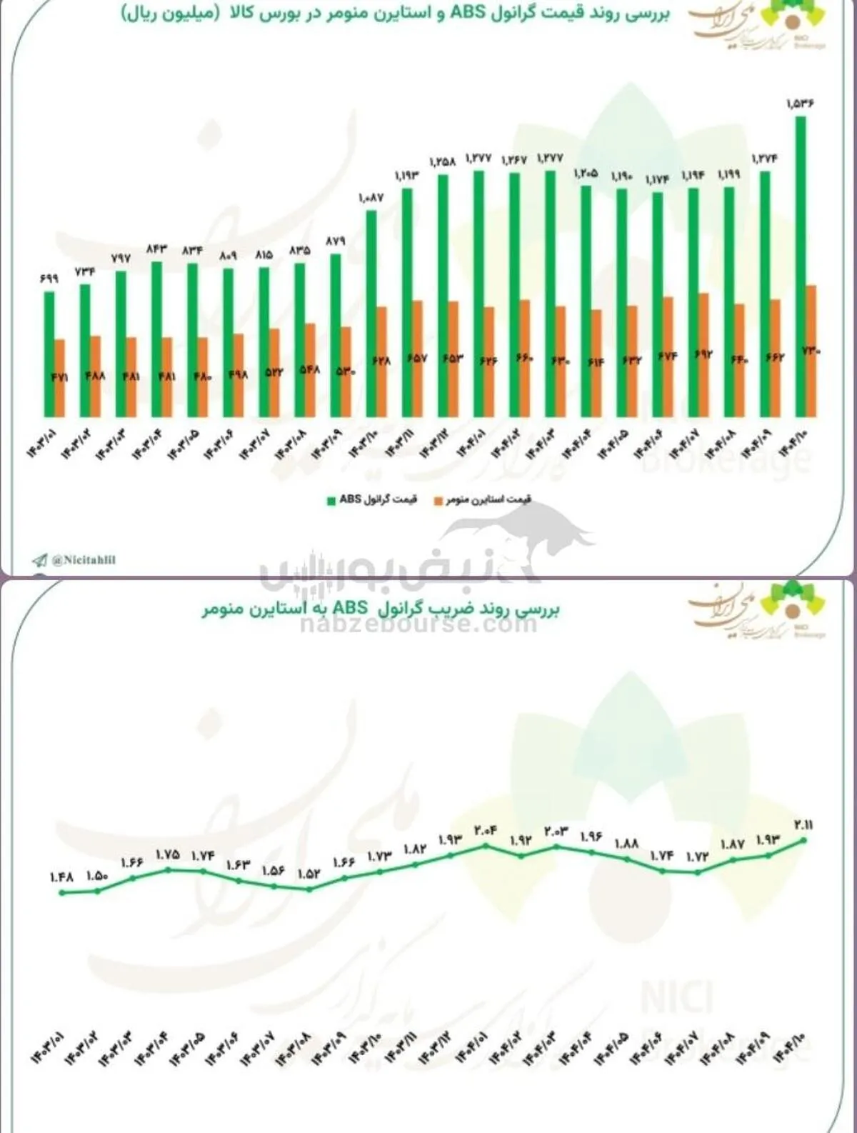 بررسی روند قیمت و ضریب گرانول ABS و استایرن منومر در بورس کالا
