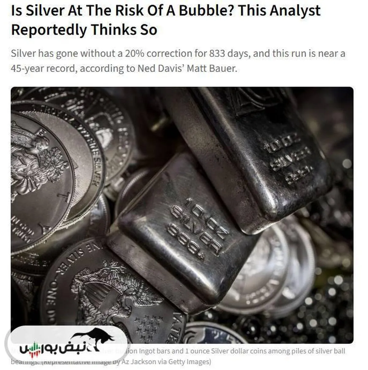 به گزارش نبض بورس، موسسه تحقیقاتی نِد دیویس هشدار میدهد که نقره وارد حباب شده است؛ به گفته این مؤسسه، این فلز به شاخصهای مومنتومی رسیده که در تاریخ آن بهندرت دیده شدهاند
