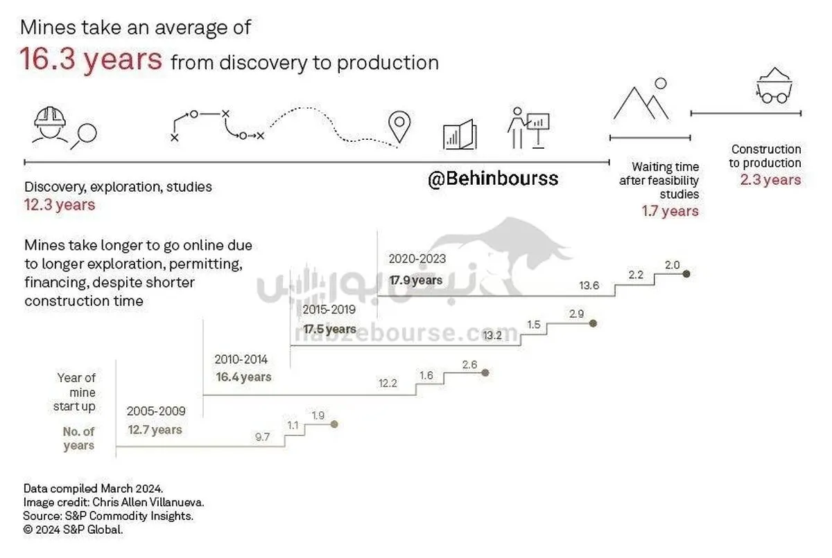 زمان لازم برای توسعه این معادن حدود ۴۰٪ افزایش یافته و به حدود ۱۸ سال رسیده است.