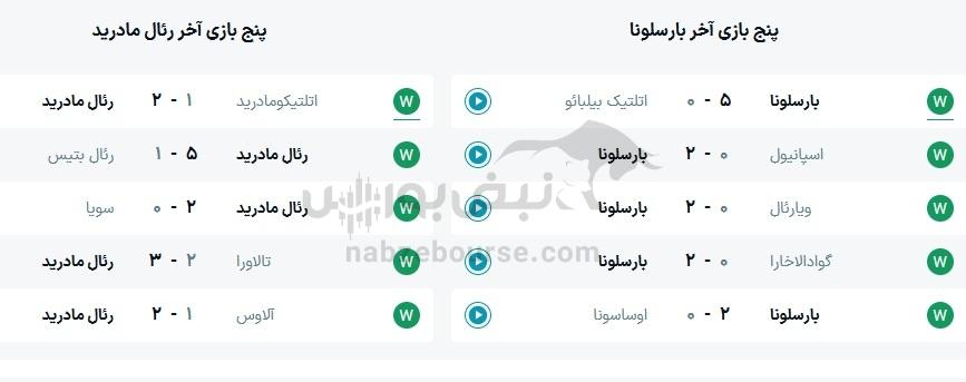 در پنج بازی اخیر بارسلونا و رئال مادرید 5 برد حاصل شده است.