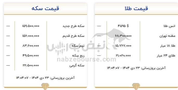 قیمت طلا و سکه امروز ۲۳ دی ۱۴۰۴