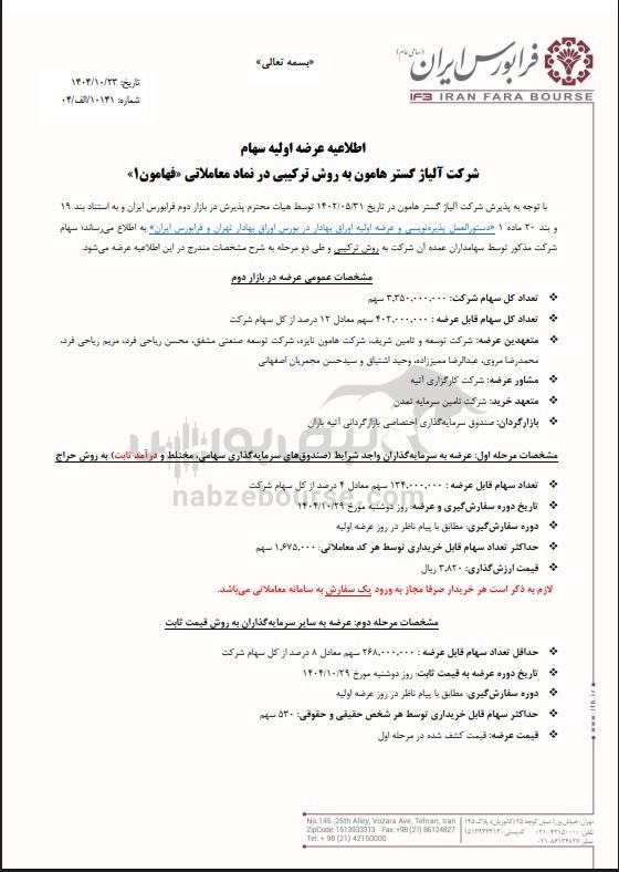 جزییات عرضه اولیه فهامون