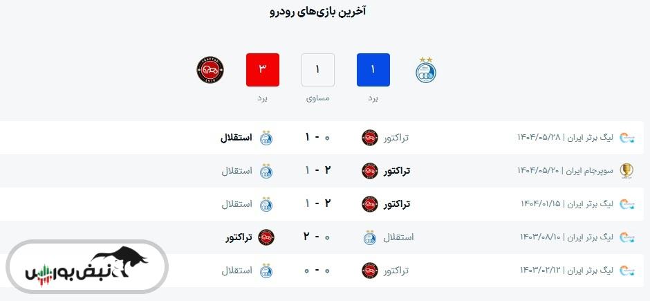 نتایج قبلی استقلال و تراکتور
