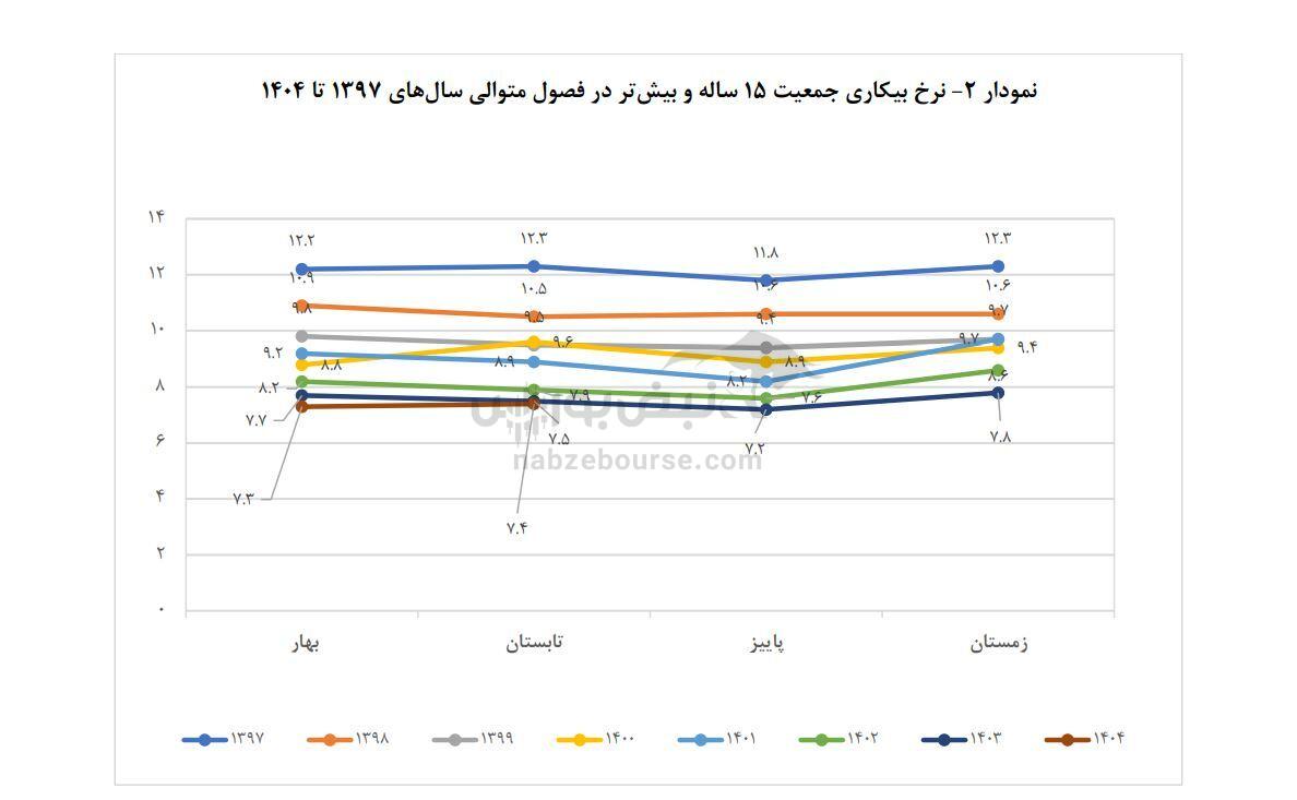 به گزارش نبض بورس، تازهترین گزارش مرکز آمار ایران از شاخصهای نیروی کار در تابستان ۱۴۰۴، یک پارادوکس عمیق در لایههای زیرین اقتصاد را نشان می دهد. جایی که کاهش نرخ بیکاری به ۷.۴ درصد، نه به معنای رونق تولید، بلکه واکنشی به خروج معنادار نیروی کار از بازار و سقوط نرخ مشارکت اقتصادی است. این گزارش نشان میدهد ارتش بیکاران ایران حالا با مدارک دانشگاهی در صف انتظار ایستادهاند و بخش خدمات با بلعیدن بیش از ۵۳ درصد شاغلان، به تنهایی جورِ ناتوانی بخشهای صنعت و کشاورزی در اشتغالزایی را میکشد. در واقع، پشتِ ویترینِ جذابِ کاهش بیکاری، حقیقتِ تلخی از خانهنشینیِ تحصیلکردهها و فشار کاریِ بیش از حدِ شاغلان فعلی نهفته است که زنگ خطری جدی برای پایداری رشد اقتصادی محسوب میشود.