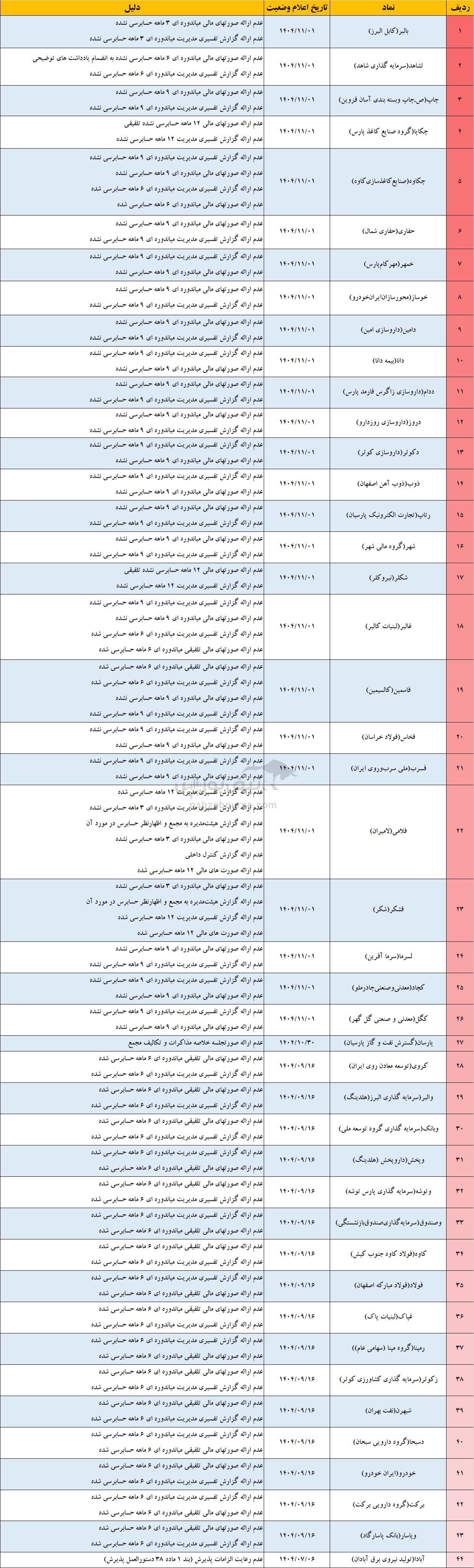 ۶۱ نماد در لیست تعلیق | سهامداران مراقب باشند!