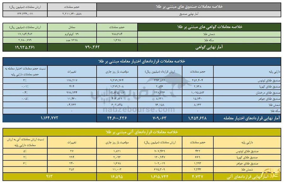 ارزش معاملات صندوق‌های طلا ۲۵.۴ همت شد