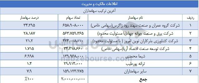 • شرکت تک صنعت بنیان کلهر — مالکیت ۱۱٪