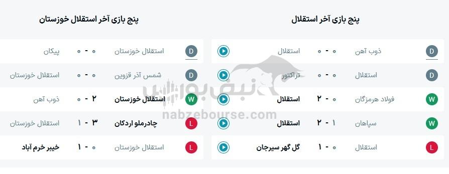 نتایج قبلی استقلال و استقلال خوزستان