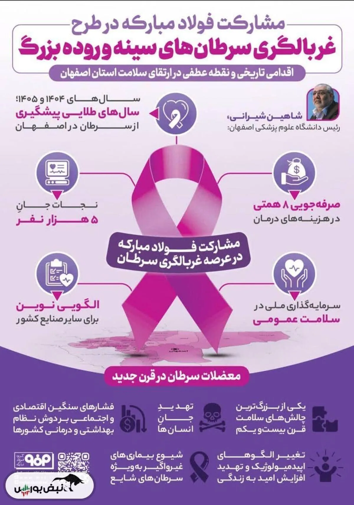 اینفوگرافیک/ مشارکت فولادمبارکه در طرح غربالگری سرطان های سینه و روده بزرگ