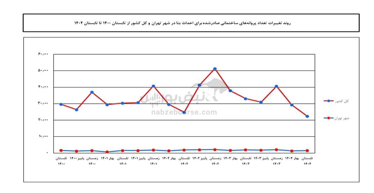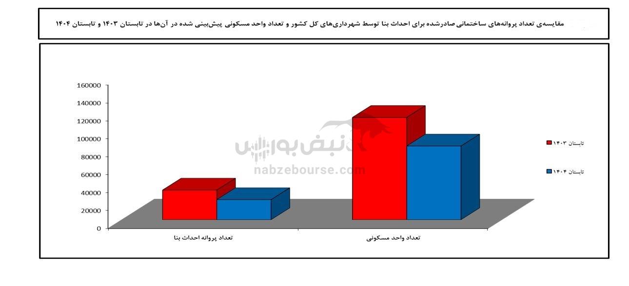 در تابستان سال 1404، تعداد 82199 واحد مسكوني در پروانه‌هاي صادرشده براي احداث بنا از سوي شهرداري‌هاي كشور پيش‌‌بيني شده است كه نسبت به فصل گذشته 24.7 درصد و نسبت به فصل مشابه سال گذشته 27.9 درصد کاهش داشته است.‏ متوسط تعداد واحد مسكوني در هر پروانه‌ي احداث بنا 3.7 واحد بوده است‌.