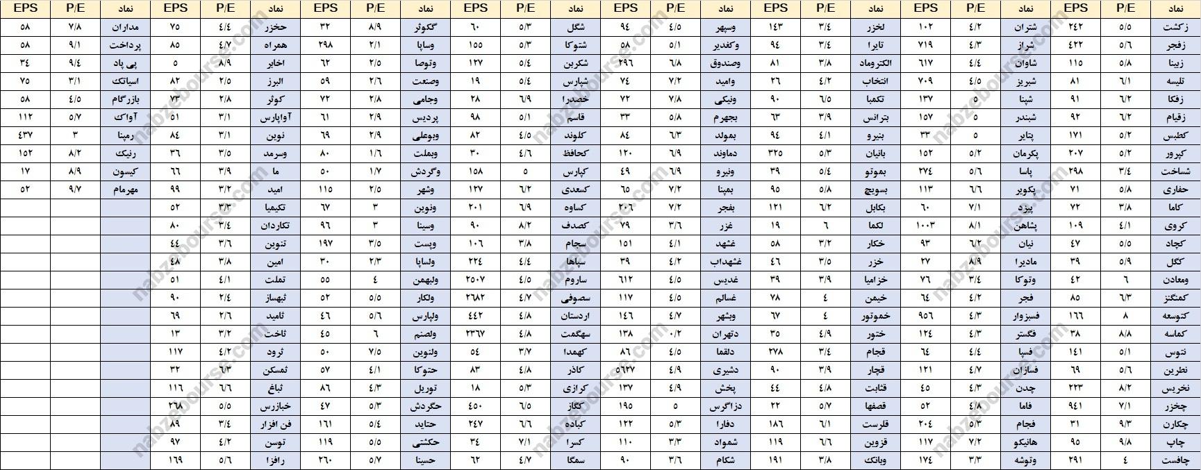نماد قیمت P/E EPS