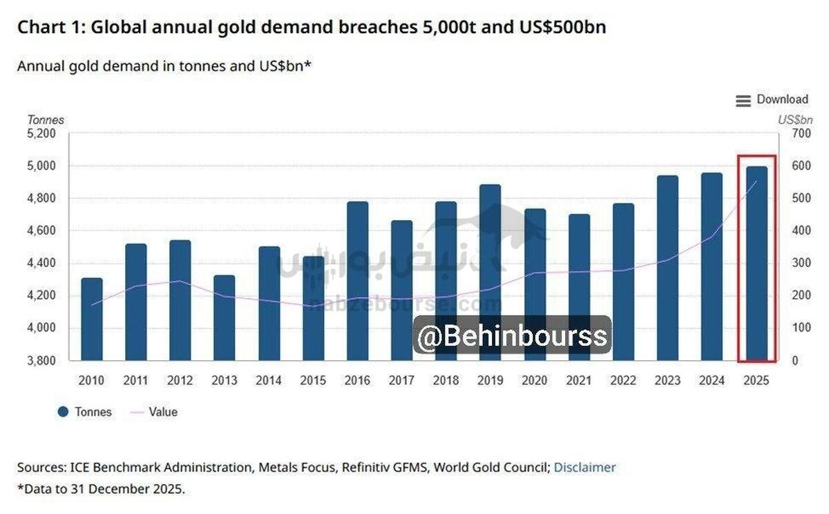 قیمت طلای جهانی دوشنبه ۱۳ بهمن ۱۴۰۴