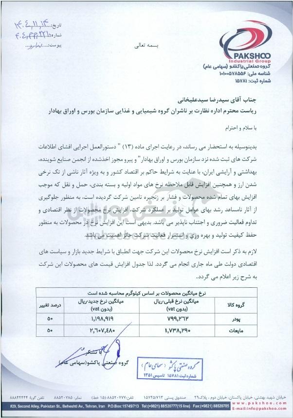 در ادامه، گروه صنعتی پاکشو از دریافت مجوز افزایش میانگین ۵۰ درصدی نرخ فروش تمامی محصولات خود خبر داد.