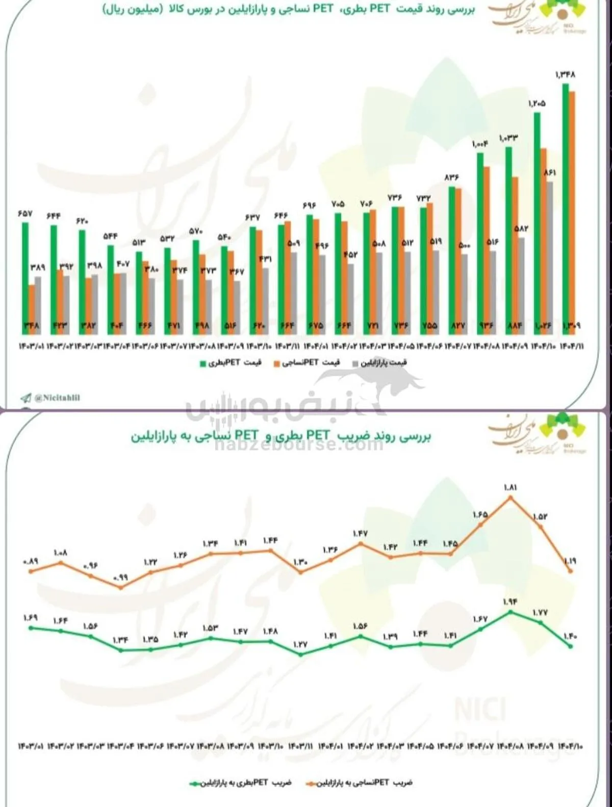 بررسی روند قیمت و ضریب PET بطری، PET نساجی و پارازایلین در بورس کالا