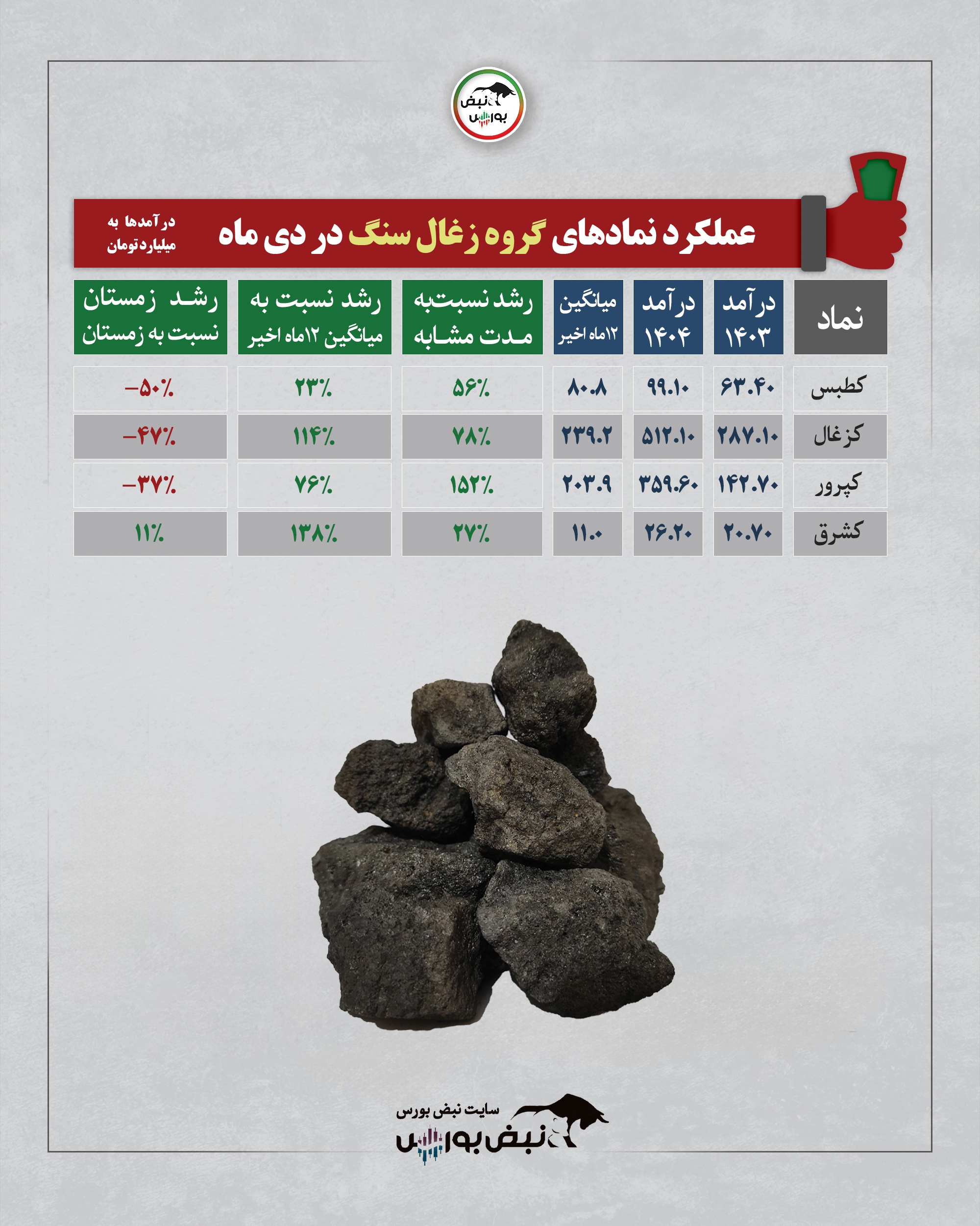 عملکرد گروه زغالسنگ در یکماهه دی ۱۴۰۴