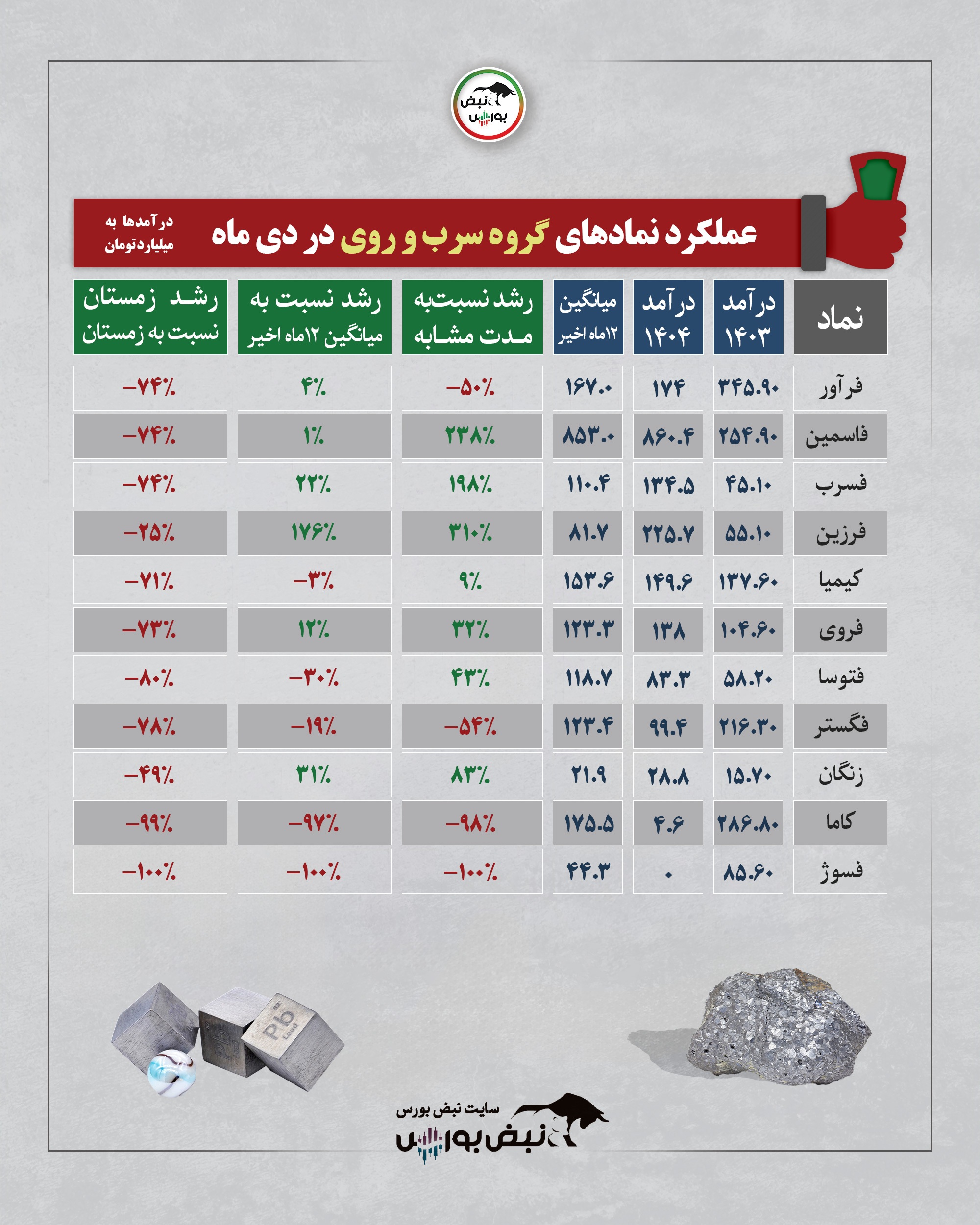 عملکرد گروه سرب و روی در یکماهه دی ۱۴۰۴