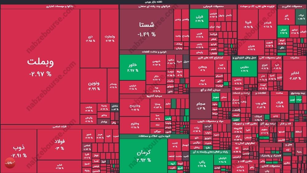 شاخص کل: 4 میلیون و 68 هزار و 590 واحد | کاهش 105791 واحدی | معادل منفی 2.53 درصد