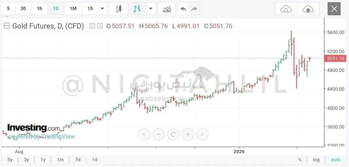 بهای نقدی طلا با رشد ۰٫۷٪ به ۴٬۹۹۶ دلار در هر اونس رسید و در مقطعی تا سطح ۵٬۰۴۶ دلار نیز پیشروی کرد. قراردادهای آتی آوریل نیز با افزایش ۰٫۸٪ در محدوده ۵٬۰۱۶ دلار معامله شدند.