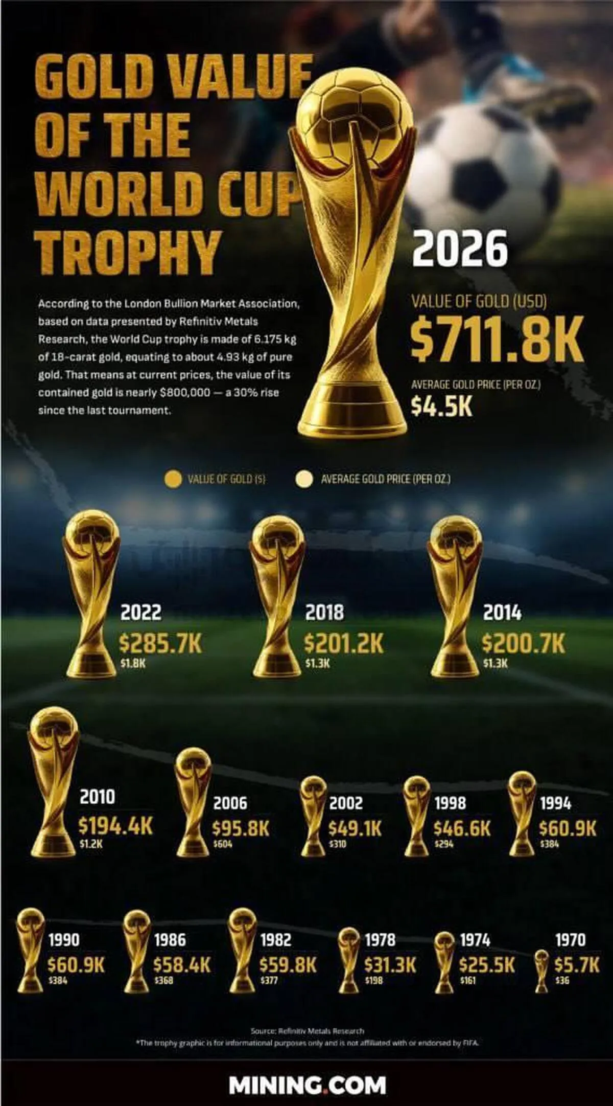 جهش قیمت طلا، ارزش جام جهانی را افزایش داد