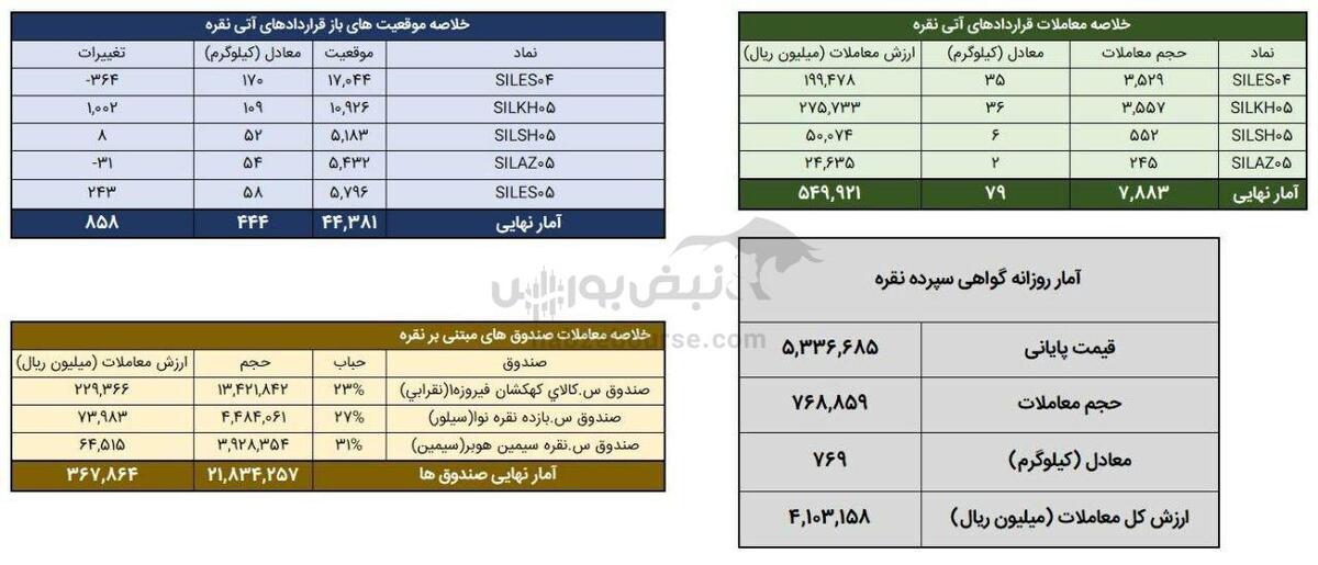 روز گذشته همچنین ۳ میلیون و ۸۹۳ هزار و ۹۰۸ قرارداد اختیار معامله کالایی به ارزش ۱۵۴ میلیارد تومان منعقد شد.
