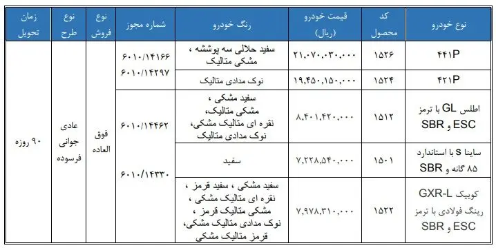 خودروهای عرضه‌شده و قیمت‌ها در فروش فوق‌العاده سایپا